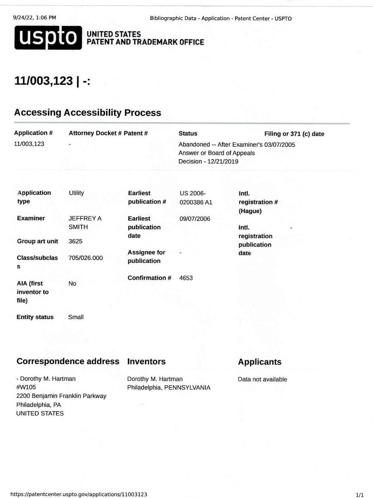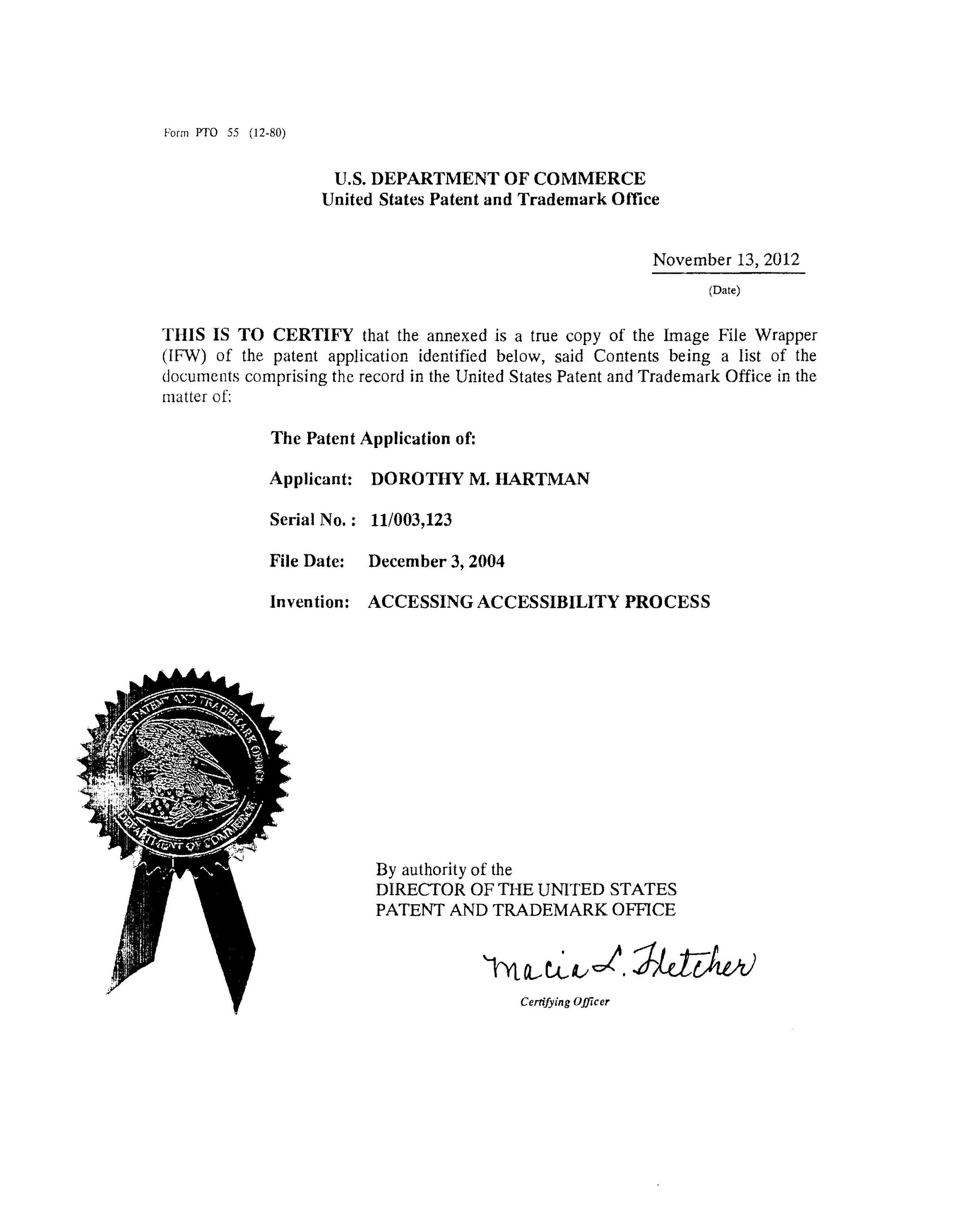 The rewritten claims shown here were ignored by the Federal Circuit Court of Appeals in the Case 2013-1070 , fraudulenly denying a patent for the Accessing Accessibility Process leaving the illegal takeover by the government in place. Scotus declined to hear the case that involves Judges violating law and ignoring evidence alleges the inventor.