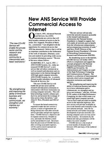 "Cyberspace has always been latent in computers and infinity has always been one of its properties – Although the ideas were abstract but laid down in practical steps that 'commercialized telecommunications' – the steps could be applied and were applied in 1990-1991. The new Internet debuted around 1993-1995 giving businesses and consumers for the first time the opportunity to participate and interact growing commerce and the economy introducing the information revolution .