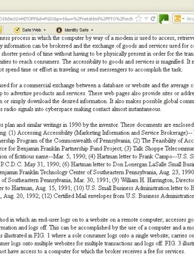 These ideas were filed with her patent application in 2004 even though the government had already taken advantage of her proposals listed above and through basically 3 Small Business Innovation Research Program as she had been instructed to do. THEY COPIED MY IDEAS AND GAVE THEM TO COMPUTER PROGRAMMERS AND COMPUTER MAKERS TO BUILD THE INDUSTRY BUT LEFT MY CONTRIBUTIONS REGARDING THE PROCESS OUT.
