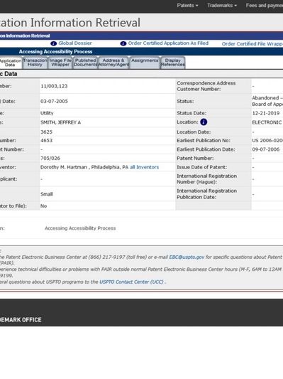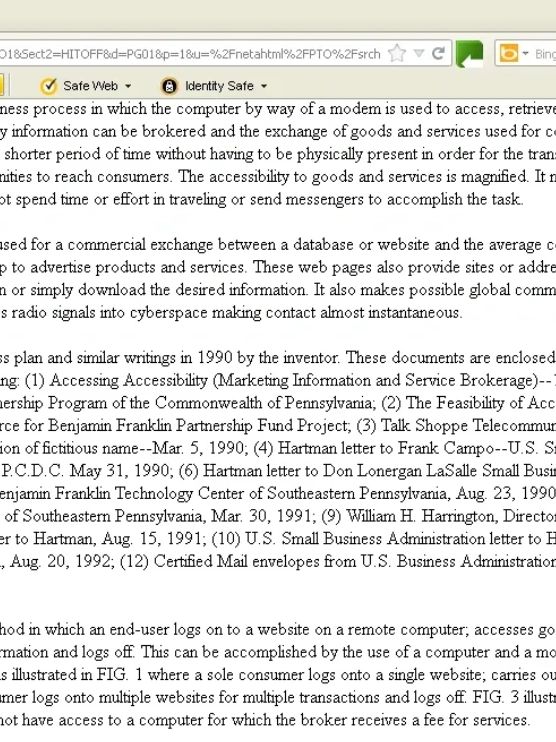 Hartman alleges that the U.S. Federal Government has had control of her intellectual property from 1990 until now claiming the Internet 2 as its own . Wny was her patent application denied ?